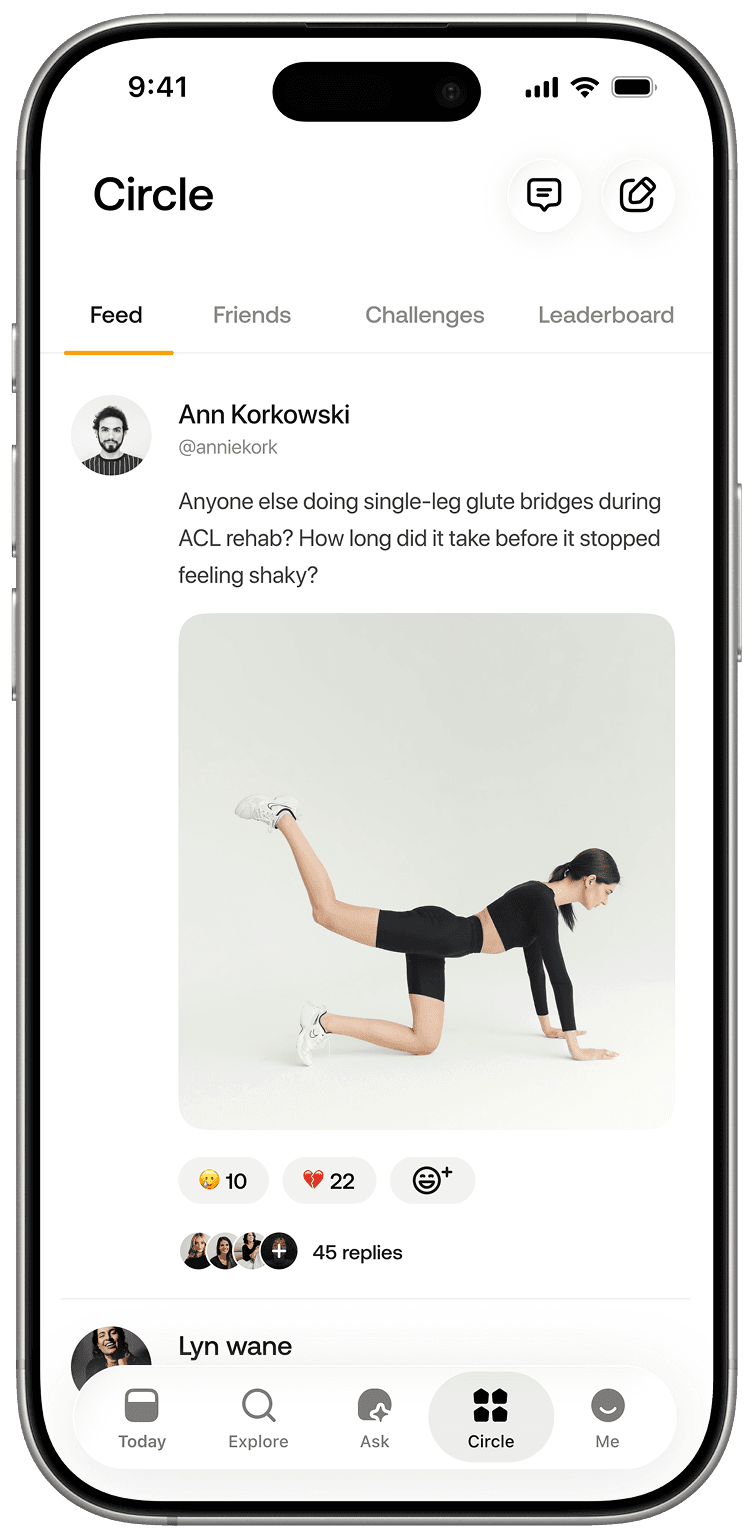 Speak freely about your recovery—food, sleep, or how your knee feels today. This space listens without judgment.