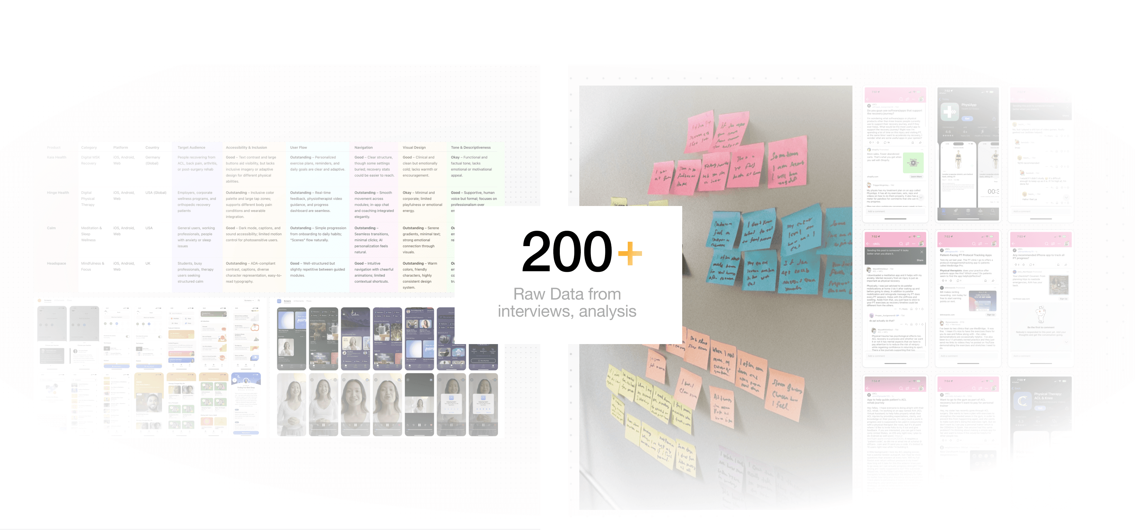 I compared existing recovery and wellness apps like Kaia Health, Hinge Health, Calm, and Headspace to identify gaps.